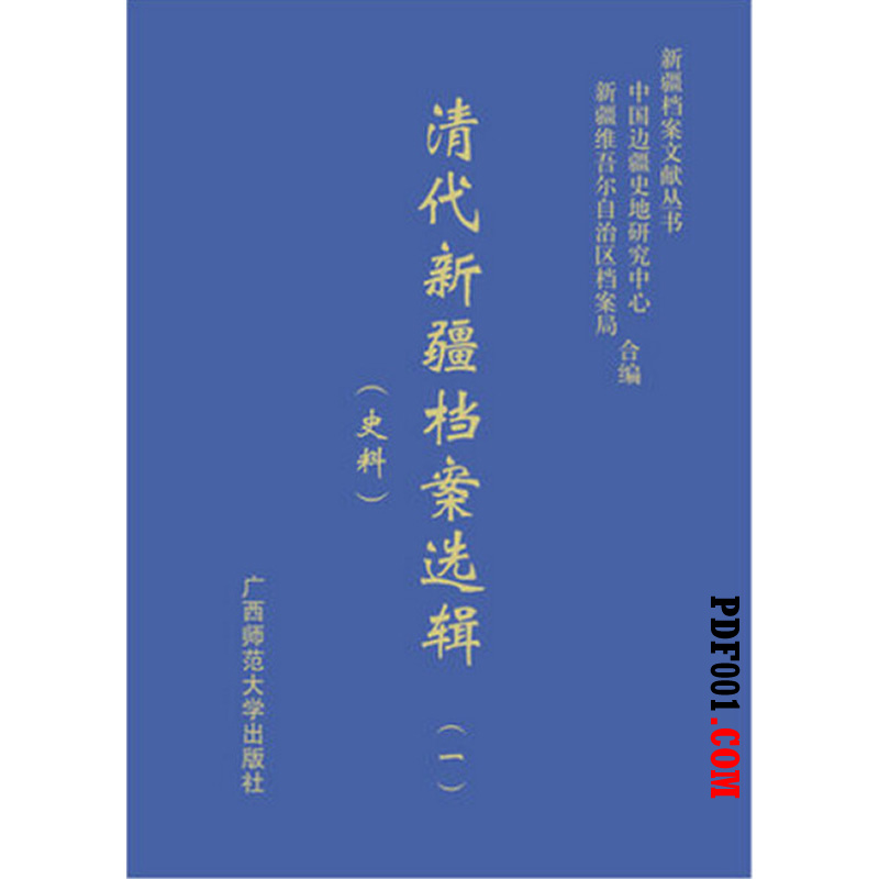 注意:《清代新疆档案选辑》是电子版(本站电子资料大部分是PDF格式,极少部分为DJVU格式。非txt epub azw3 mobi doc exe uvz pdg等格式),不是纸书,不发快递,付款后自动发货,弹出百度云盘下载地址和密码,自己下载即可!(下载后可用电脑、手机、平板电脑阅读,阅读后如感兴趣,可以去书店购买相应的纸资书籍) ![]() 《清代新疆档案选辑》PDF电子书共90册(暂缺第87册),由广西师范大学出版社2012年出版。