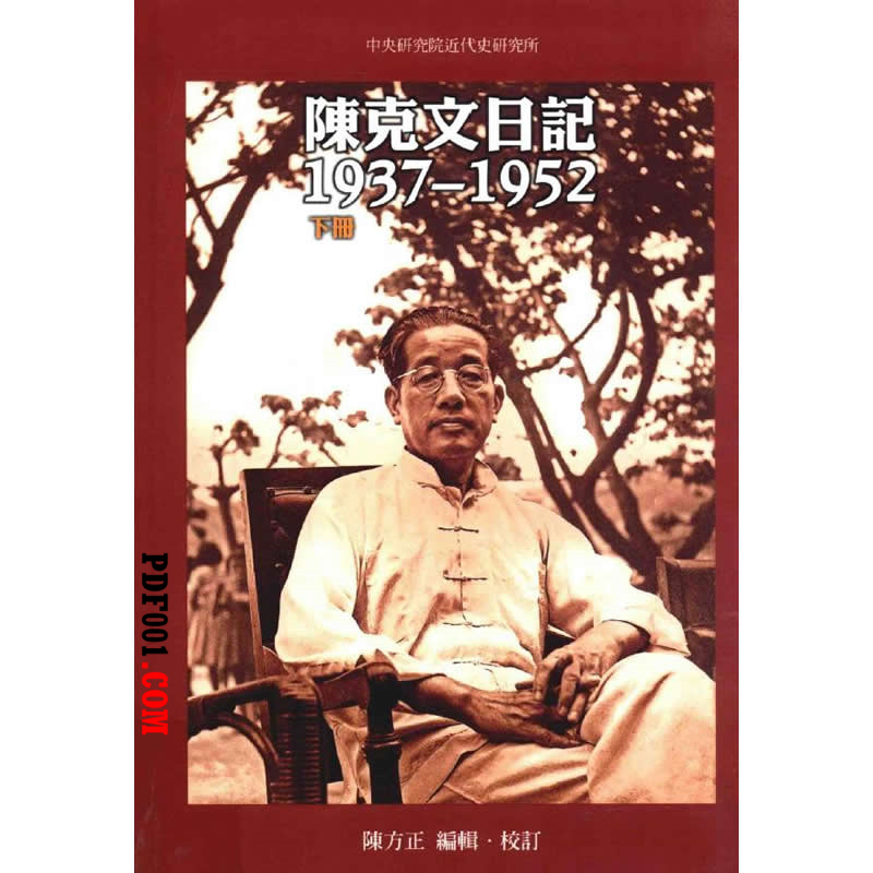 注意:《陈克文日记(1937-1952)》是电子版(本站电子资料大部分是PDF格式,极少部分为DJVU格式。非txt epub azw3 mobi doc exe uvz pdg等格式),不是纸书,不发快递,付款后自动发货,弹出百度云盘下载地址和密码,自己下载即可!(下载后可用电脑、手机、平板电脑阅读,阅读后如感兴趣,可以去书店购买相应的纸资书籍) ![]() 《陈克文日记(1937-1952)》PDF电子书全2册,由台湾中央研究院近代史研究所2012年出版。
